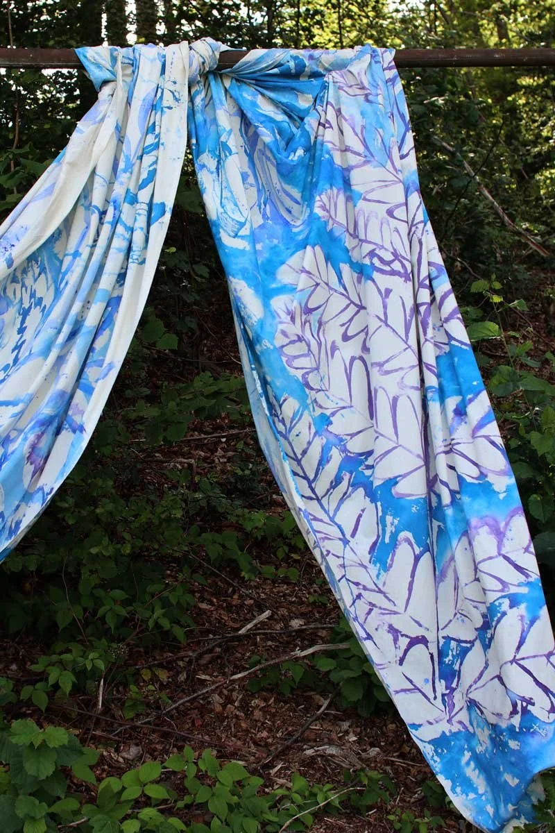 Eine sanfte Umarmung des Wassers. Getränkt mit Geschichten und Begegnungen, fließt eine Strömung aus Stoff und Farbe durch den Raum. Stoffbahnen winden sich ihren Weg, wachsen an den Wänden wie Wasseradern empor und werden in leuchtenden Skulpturen in ihrer Bewegung festgehalten.